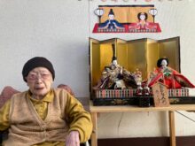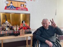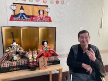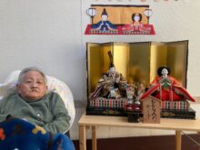 みんなでひな人形の前で写真を撮りました